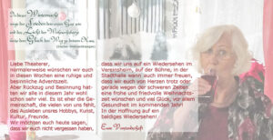 Dann ging nichts mehr. Gerade ein paar entspanntere Corona-Sommer-Wochen konnten genutzt werden, damit unser Bühnenbau noch etwas umbauen und aufräumen konnte. Unser ausgebildeter Pyrotechniker konnte (unter Einhaltung aller Hygieneauflagen…) für den Theater-Verband Pyrotechnikkurse durchführen, aber an spielen war nicht mehr zu denken.