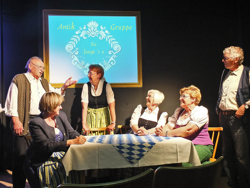 Neue Ideen und eine riesen Gaudi für das Publikum, das war „Boarisch Kunterbunt“. Die Antikgruppe – also die älteren Semester des Vereins – hatten mit „Baiern vor der Sündflut“, „Der ägyptische Pharao“ und dem „Turmbau zu Babel“ nochmal Höhepunkte aus der Baierischen Weltgschicht herausgesucht, wollten aber nicht nur bei der Lesung stehen bleiben. Deshalb wurde das Programm bereichert mit Sketchen von Karl Valentin, Helge Schneider, Paul Herdrich und Max Josef Lippl. Die hinterkünftigen Saitendratzer von „Herrschaft!Sait’n“ um Franz Schesser und Pia Janner-Horn kommentierten musikalisch.