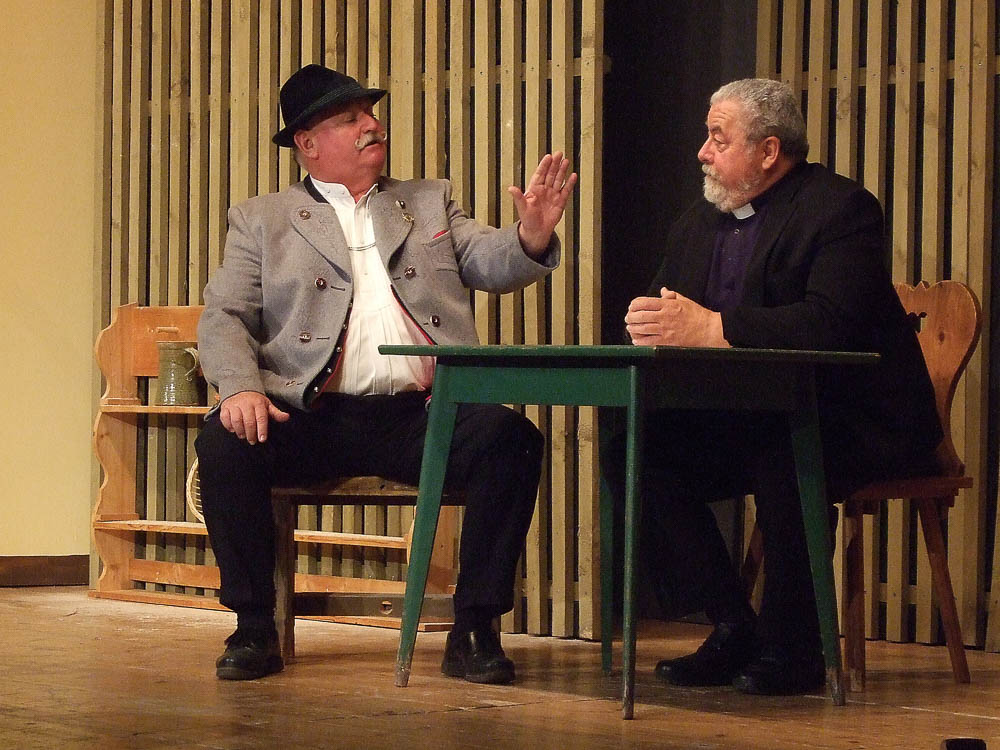 Pfarrer Fröhlich bekommt zu seinem 25-jährigen Amtsjubiläum eine Floriansfigur von der Gemeinde, die der geizige Bürgermeister Scharrer zu diesem Zweck einfach aus der hiesigen Kapelle entfernen lässt.