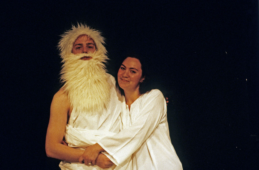 Mit einem Dia-Vortrag des Heinrich Schliemann bekommt der Zuschauer Nachhilfe zu den historischen Fakten, zwei weißclownartige Gestalten holen den Zuschauer mit Zwischenszenen und Tänzen immer wieder zurück in die Gegenwart.