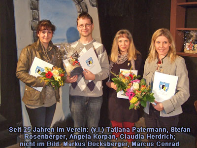 Für 25 Jahre Mitgliedschaft im Verein wurden Angela Korpan, Tatjana Patermann, Claudia Herdrich, Stefan Rosenberger, Markus Bocksberger und Marcus Conrad geehrt. Der Bezirksverband dankte ihnen mit der silbernen Ehrennadel.