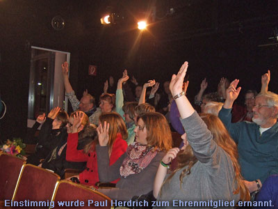 Besonders freuten wir uns Paul Herdrich zum Ehrenmitglied ernennen zu dürfen. Er führte den Verein 18 Jahre als Vorstand, war federführend beim Aufbau der ersten Jugendgruppe (Bündel 91), trieb den Aufbau der Probebühne voran, inszenierte viele aufwändige Theaterstücke und war auch immer wieder als Schauspieler zu sehen. Sein Rat ist nach wie vor gefragt und sein Engagement geschätzt. Mit stehenden Ovationen dankten ihm die Mitglieder.