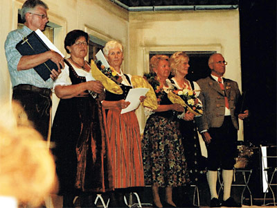 100 Jahre Theaterverein – ein Grund zum Feiern. Gründungsmitglieder konnten wir leider nicht mehr aufbieten, aber auch mit all den aktiven und fördernden Mitgliedern, den Gönneren, befreundeten Vereinen und Gruppierungen und den Verantwortlichen von Kultur und Politik in Penzberg war die Stadthalle voll besetzt. Mit großen Aufführungen hielten wir uns bewusst zurück, da wir ja feiern, nicht arbeiten wollten. Neben kurzweiligen Festreden spielte die Glentleitner Stubenmusik und der Oberlandler Dreigesang kommentierte die Vereins- und Stadtgeschichte. Der Höhepunkt war sicher der von Günther Bergel erstellte Film, der die 100 Jahre, sowie das vergangene Festjahr Revue passieren ließ. Der Film ist auf Anfrage noch zu erwerben.