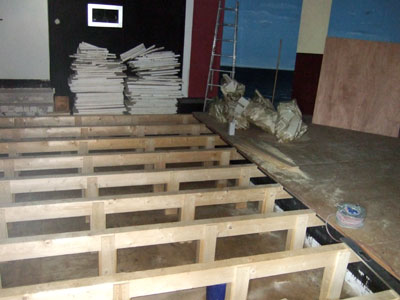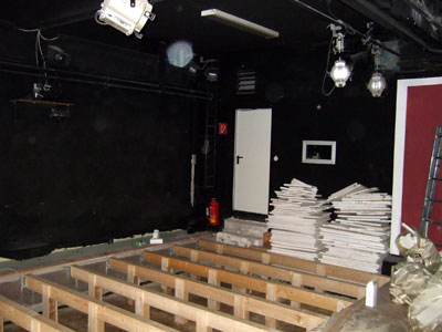 Allmählich scheinen die Jahre des Umbaus zu Ende zu gehen. Als einen der letzten Akte konnten wir nun den Umbau des Zuschauerraums in der Probebühne in Angriff nehmen. Damit können wir endlich auch rollstuhlgerechte Zuschauerplätze anbieten. Ganz nebenbei sind endlich einige Stolperfallen beseitigt, die einzelne Zuschauer leider schon schmerzhaft kennengelernt haben.