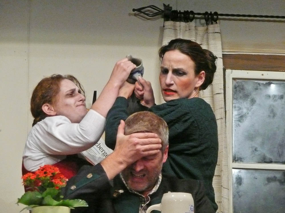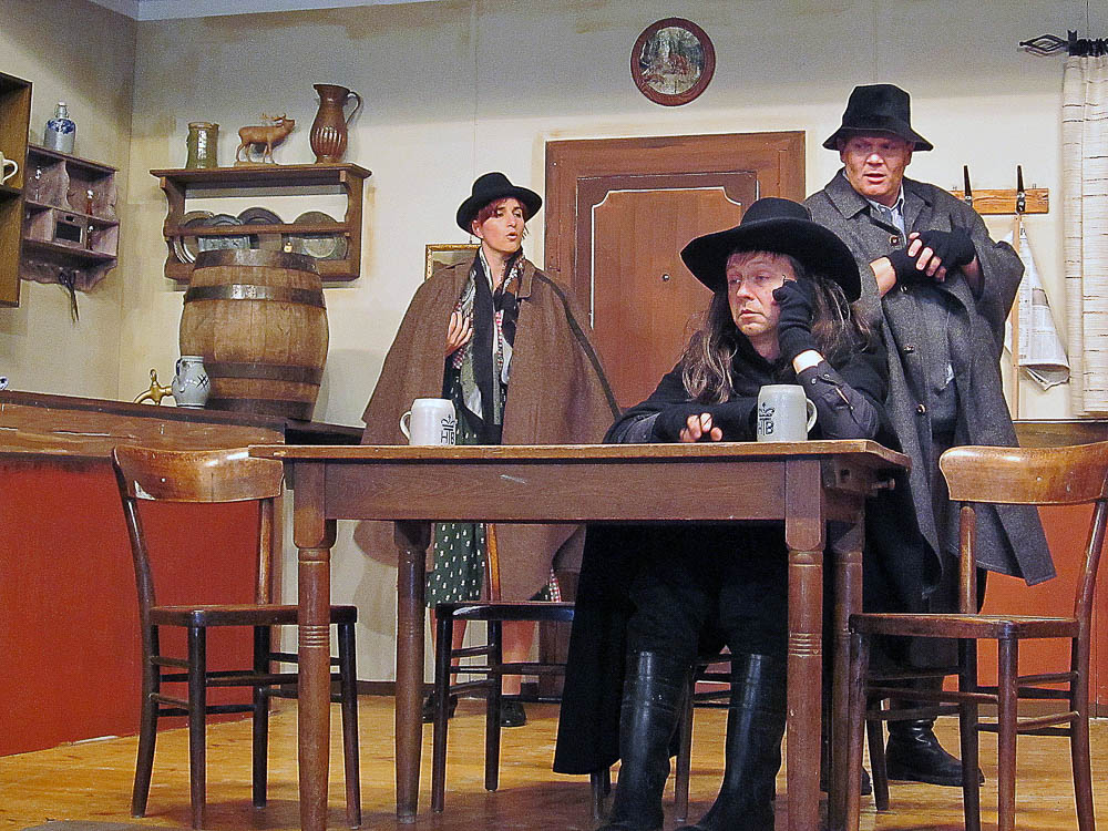 Eines Tages müssen die beiden erfahren, dass ihr Gehalt gestrichen, dafür aber eine geringe Prämie pro Begräbnis bezahlt wird. „Nur a Leich macht uns reich!“, erkennen sie, und eine Flasche Gift lässt schnell finstere Gedanken aufkommen. Der ausgesprochene Fluch von Philomena, der Dorfverrückten, tut sein Übriges und unheimliche Gespenster geistern durchs Dorf.