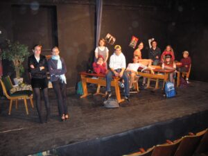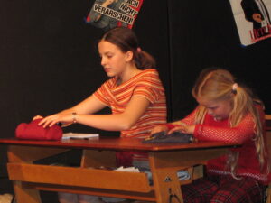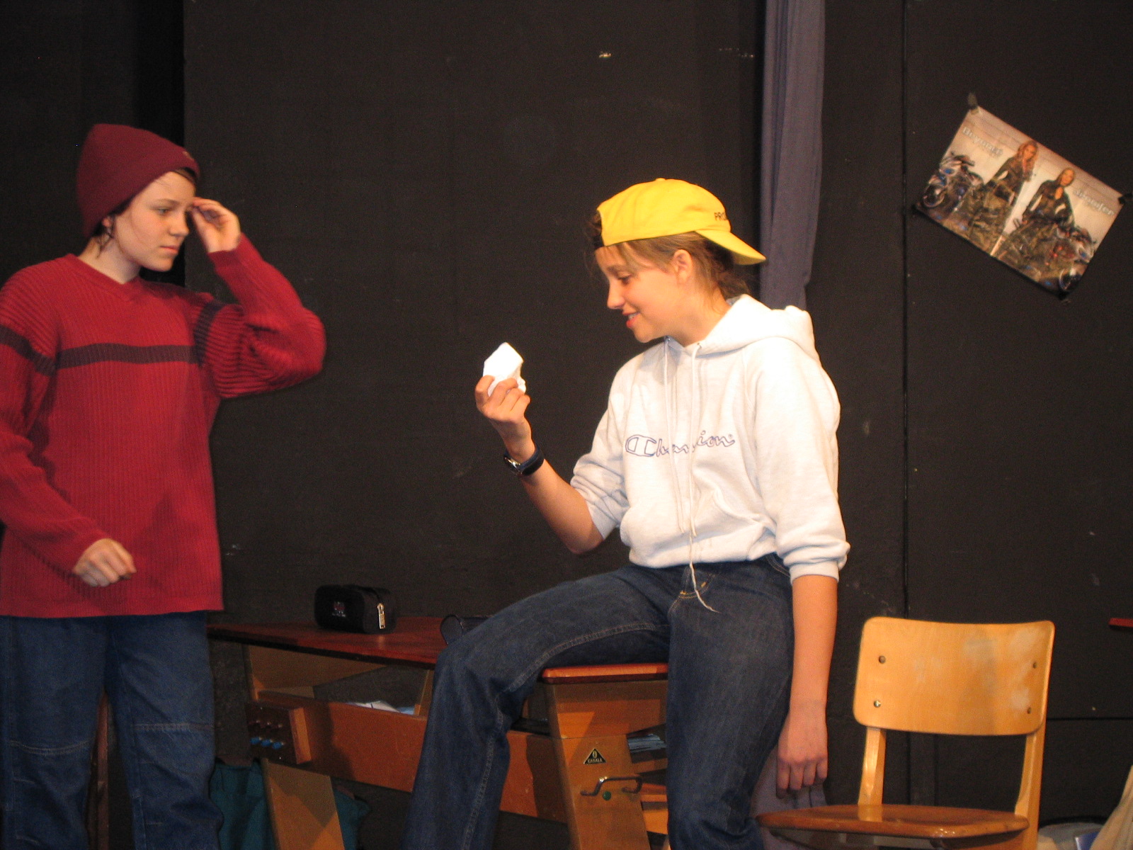 Die erste Inszenierung, mit der die gerade gegründete Jugendgruppe „Lampenfieber“ in den Blick der Öffentlichkeitsarbeit trat: Eine Sammlung von möglichen und unmöglichen Situationen, die das Schulleben (hier hauptsächlich aus Sicht der Schüler) so mit sich bringt.