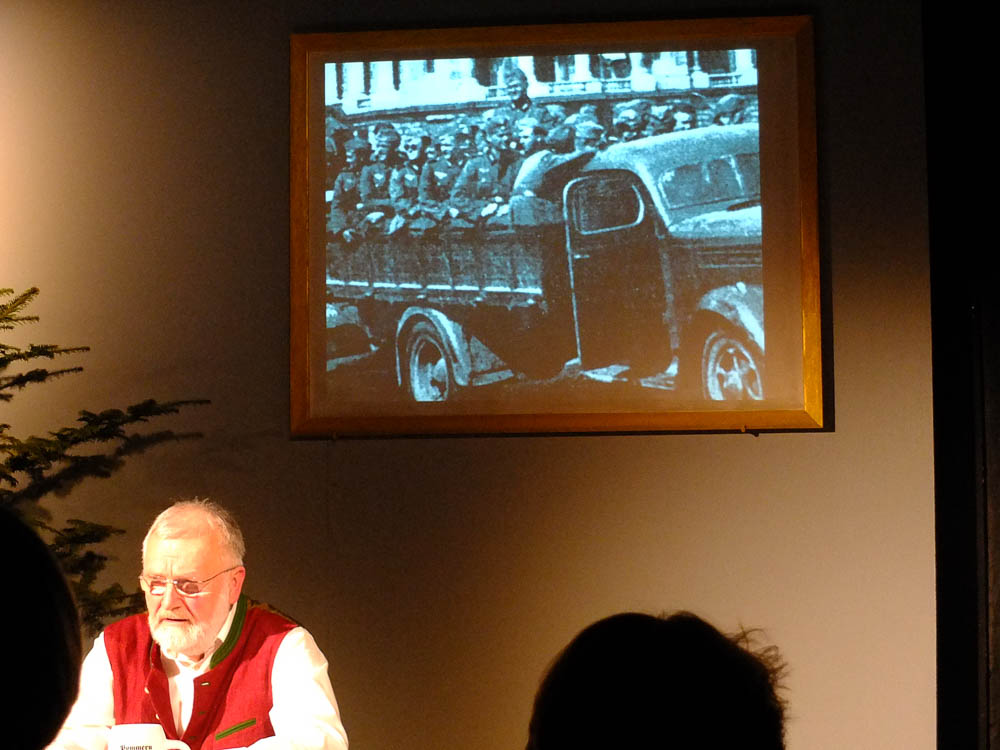 Gut ausgewählte Passagen aus dem Buch wurden aufgelockert mit lyrischen Texten, die die Sehnsucht nach der alten Heimat verdeutlichten. Durch die Projektionen fühlte man sich fast zu einem Plausch vor dem Familienalbum mitgenommen. Garniert wurde die Lesung durch osteuropäisch angehauchte Geigen-, Cello- und Klavierklänge, gekonnt interpretiert durch die Geschwister Horn.