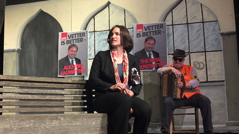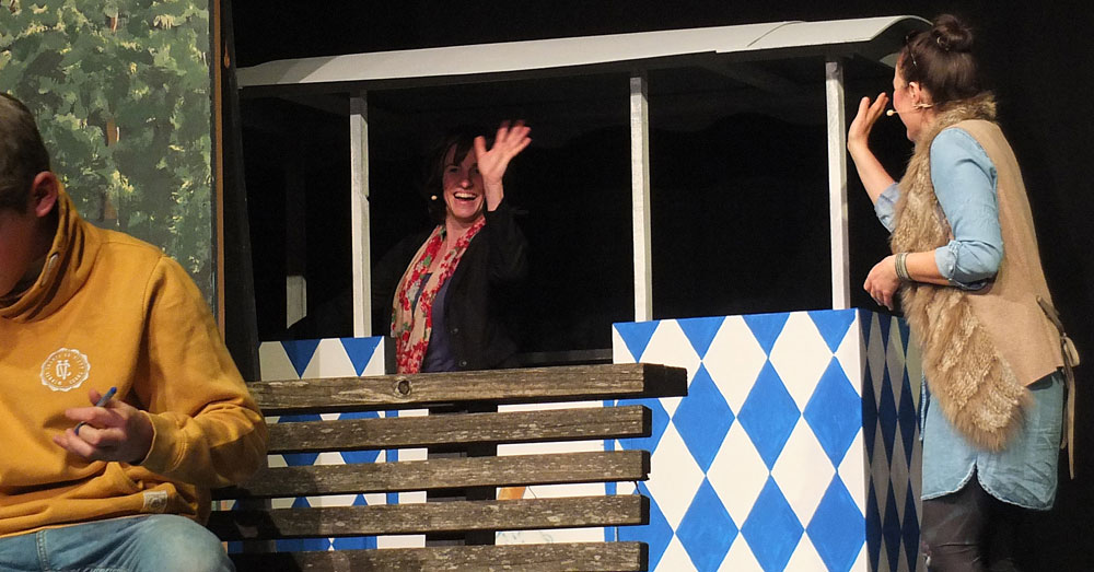 Anschluss liefen ihnen allerlei bekannte Gestalten über den Weg. Zunächst der „Beitler Willi“, ein Penzberger Original, das über Jahrzehnte mit dem Zug in die Münchner Fußgängerzone zum Musikspielen fuhr. Er wurde gewissermaßen zum „Running Gag“ der Vorstellung.