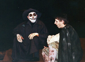 Der Tod ist unbarmherzig, aber auch gerecht. So mahnen es viele „Totentänze“ immer wieder an. Das „Gedenke des Todes“ des Barockzeitalters und die Volksfrömmigkeit spiegelt sich darin immer wieder. Die Darstellung aus der Straubinger Totentanzkapelle inspirierte den Autor Matthias Pöschl zu diesem Stück. Und es hält, wie die entsprechenden Bilder, den exemplarisch dargestellten Zeitgenossen den Spiegel vor und war eine sehr ergreifende Umsetzung des Themas durch die Oberlandler. Sei es der Pfarrer, der die ewige Seeligkeit predigt, aber sie ganz gerne hinauszögern würde, der Wucherer, der meint auch seinen letzten Weg mit Geld regeln zu können oder der Totengräber, der nicht glaubt, gerade sein eigenes Grab zu schaufeln. Die holzschnittartigen Episoden wurden durch passende Musik zu einem beeindruckenden Ganzen zusammengefügt.
