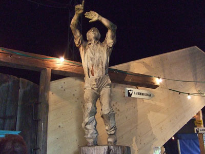 Am frühen Abend war unser Ziel das Theaterzelt in Riedering, wo wir den „Himmegugga“ besuchten, eine amüsante, klamaukige und doch tief gehende Geschichte um einen zwiedernen Sonderling, der – neben seinen skurilen Erfindungen – nach Außerirdischen Ausschau hält und in dessen Haus gschlamperte Kobolde hausen.